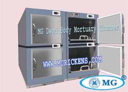 New revolutionary adventure for dead body preserving unit used for hospitals and nursing homes with low investment and power saving model. Normally all multi body mortuaries are all ways in on position even though it have single or two or there but by using this stem we can control and on-of the independent unit separately and save the electricity bill. Another issue is if the system face any complaint the entire unit is shutdown every one knows its headache. By using MG mortuary champers we can forget this entire headache.